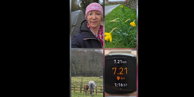 Day one walking in the rain and saw daffodils, snowdrops and lots of birds. Spotted some horses and enjoyed my walk.